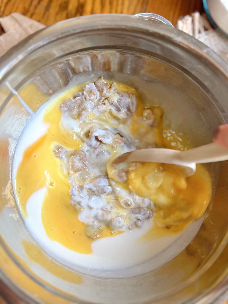 - Add bowl of cereal covered in boiling water (that you set aside at the beginning of your recipe) to the second bowl.